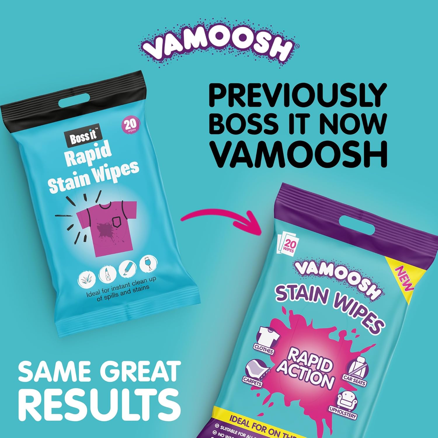 Whether it’s a splash of wine, grass stains from the garden, or a lunchtime mishap, Vamoosh Stain Remover Wipes are your go-to for fresh stain emergencies at home or on the move. Made from biodegradable, plant-based fibres, each wipe is plastic-free and safe to use on clothing, upholstery, and carpets. Just grab, dab and go – no soaking, no scrubbing, no stress.